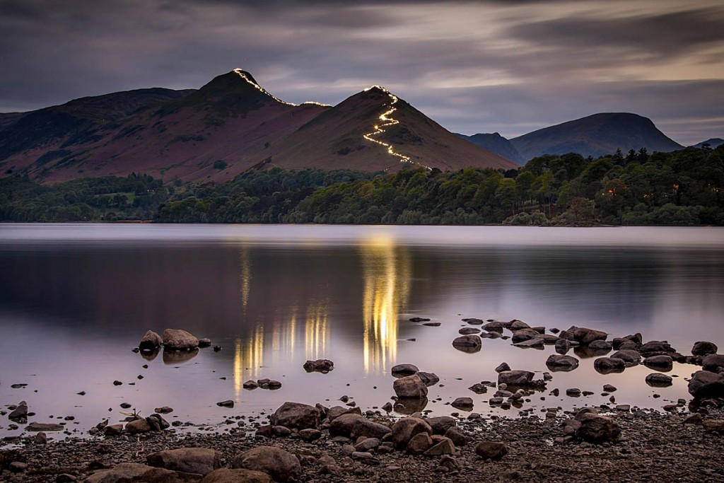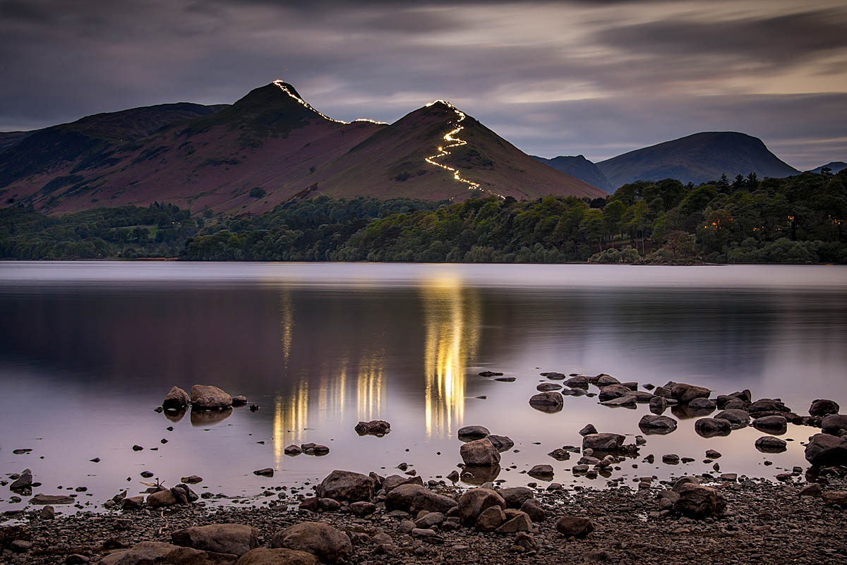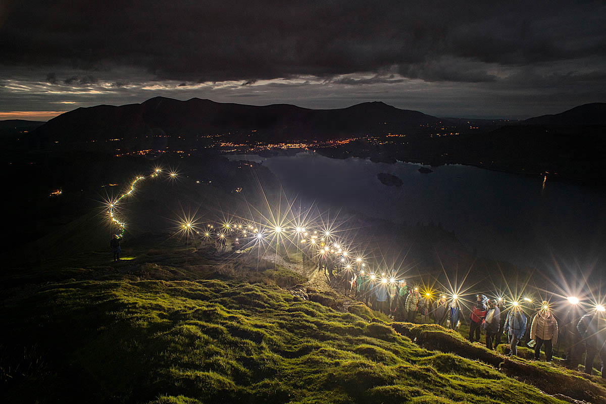 A line of walkers used their headtorches to illuminate the ridge of Cat Bells, with a team of photographers capturing the event.