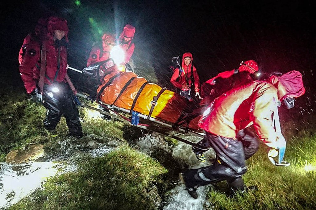 The 53-year-old slipped, injuring his thigh muscles, and could not bear weight on the leg, leaving him unable to make his way off the fells.