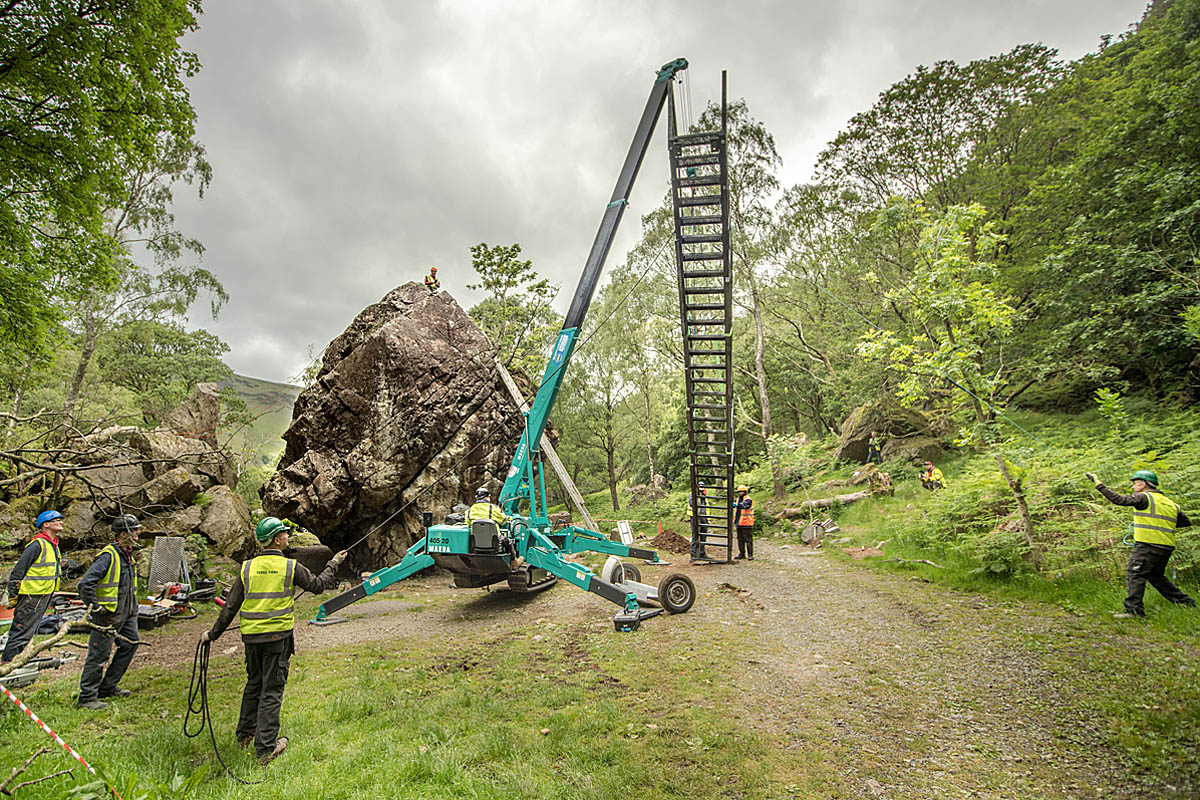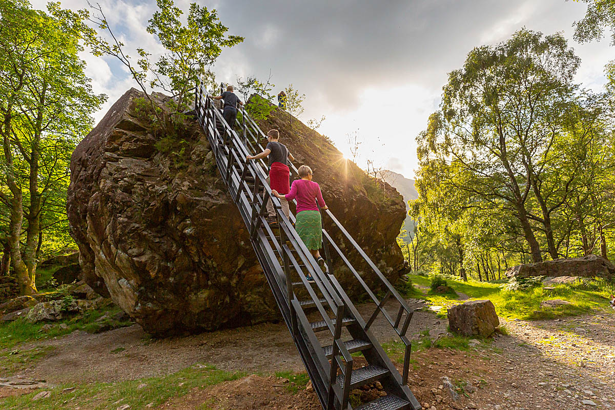 A new metal ladder allows visitors a ‘bird’s nest view’ from the top of the Bowder Stone in Borrowdale.
