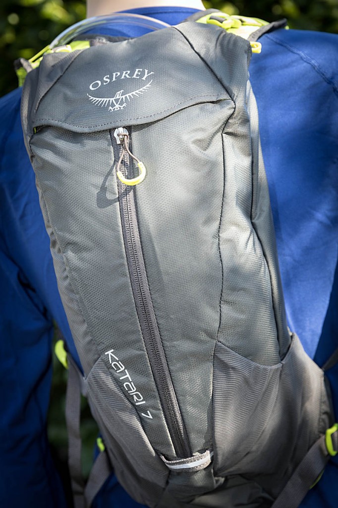 The Katari 7 has another small pocket at the top of the pack, which is zipped and contains a key clip. The pocket is big enough for items such as a phone and sunglasses.
