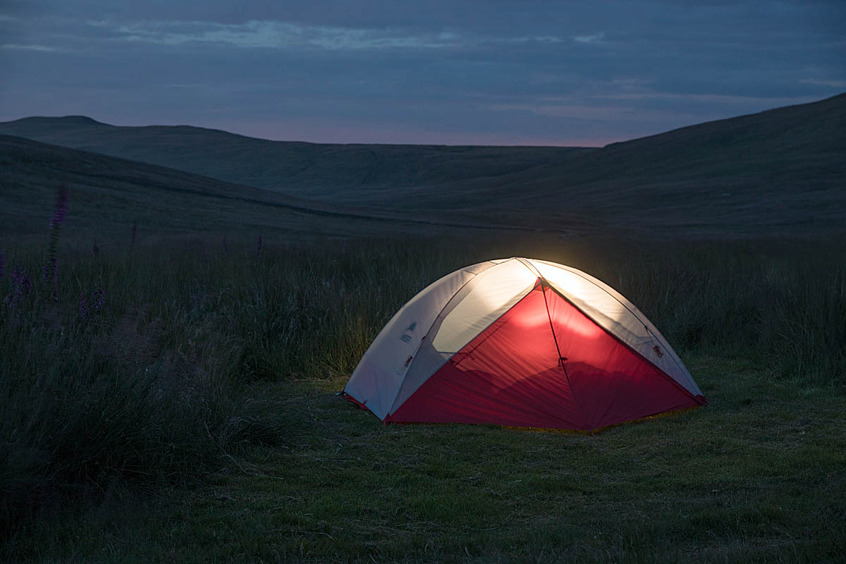 Winds were fairly light on our wild camp, so we didn’t need to guy the MSR tent. It’s described as a three-season tent so may not be suitable in a full-on mountain storm.