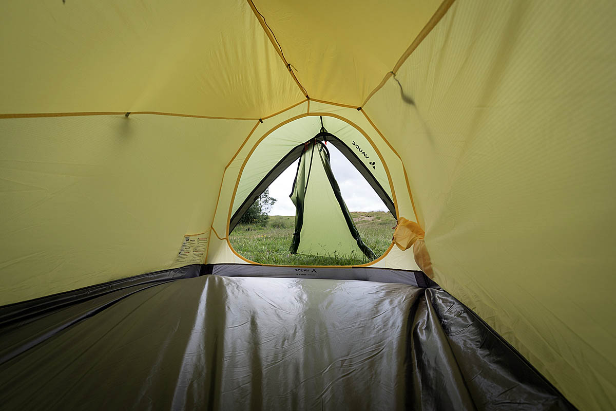 The inner tent fabric is solid polyamide, warmer than some of the mesh inner tents. On an unseasonable cool wet Lake District night, the Vaude tent kept us warm and dry.