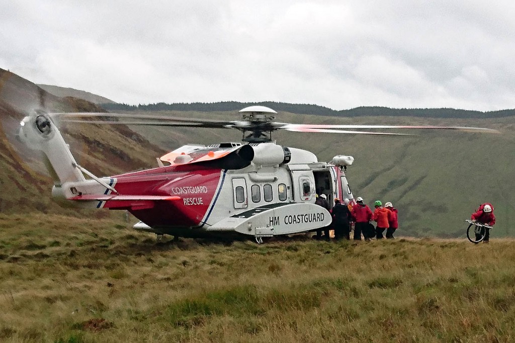 “Fortunately R936 was available and able to fly in under the cloudbase and land close to the casualty. After a short stretcher carry, the woman was loaded aboard and flown to Ysbyty Gwynedd for further assessment and treatment.”