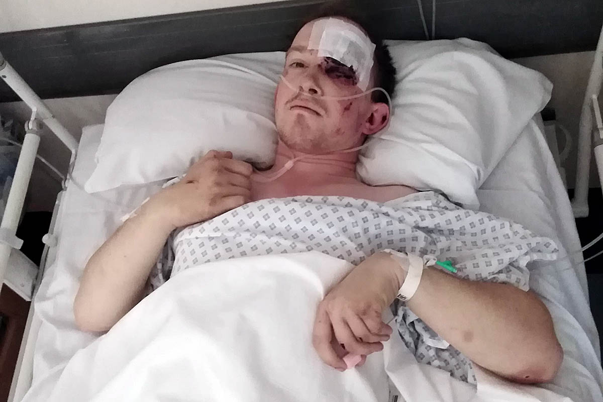 The 25-year-old from Wigan in Greater Manchester, suffered a broken pelvis, back, and sternum, a punctured lung, and a large cut above his left eye in the fall.