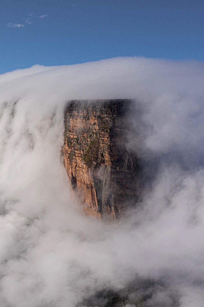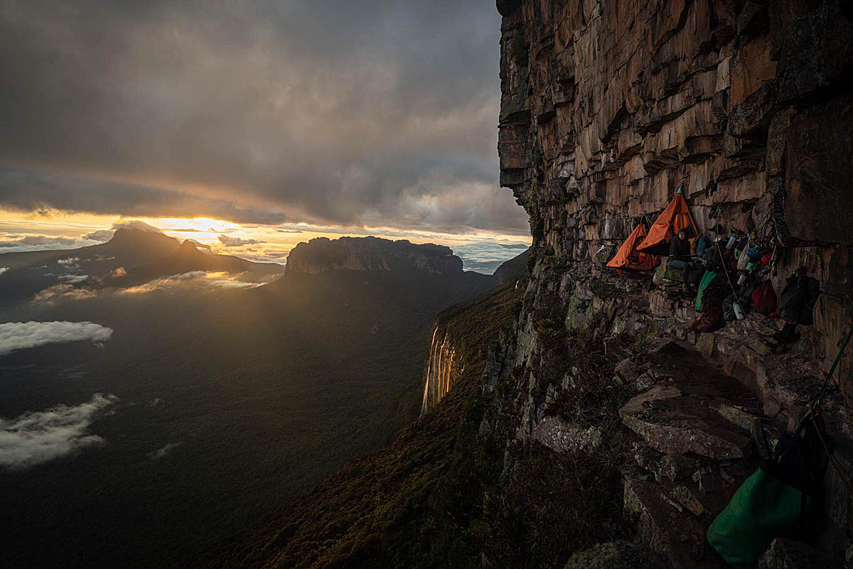 Camps have been established using portaledge on the towering rockfaces of the imposing table-top mountain, said to have influenced Arthur Conan Doyle’s novel The Lost World.