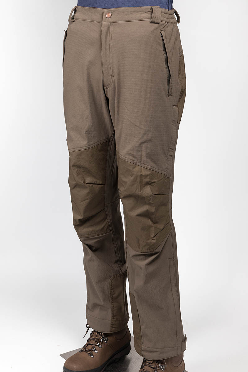 The crotch is gusseted and the knees have articulation which, along with the moderate stretch of the fabric, help mobility when stepping up. There’s extra fabric reinforcement at the bottom of the legs and the inner ankle area to guard against boot scuffing.
