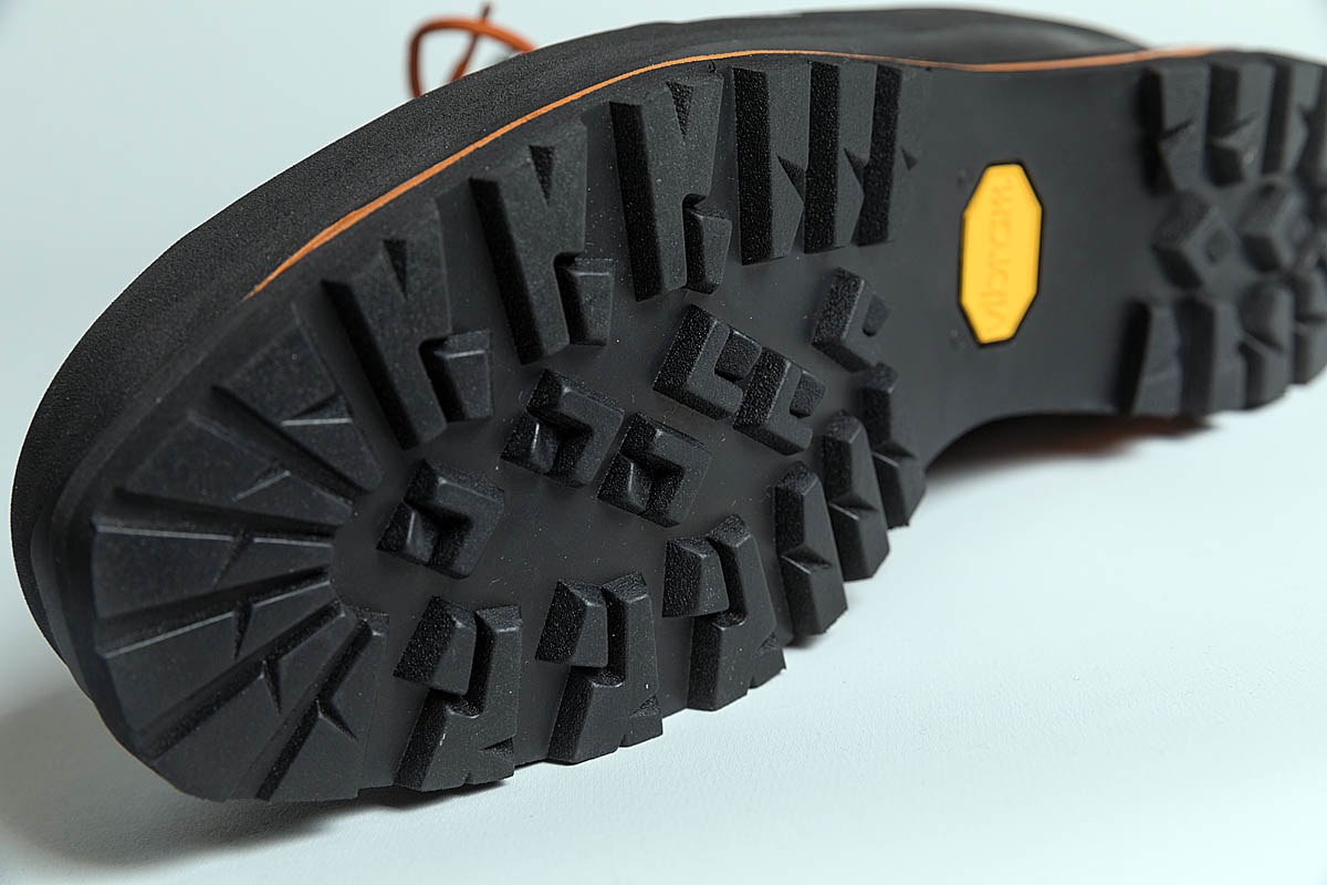 The outsole is Vibram’s Nepal model, with 5mm-deep lugs in the heel and forefoot area, and a shallower pattern at the heel and toe extremities. The rubber is hard, with little give, to maximise durability on hard ice and rock.