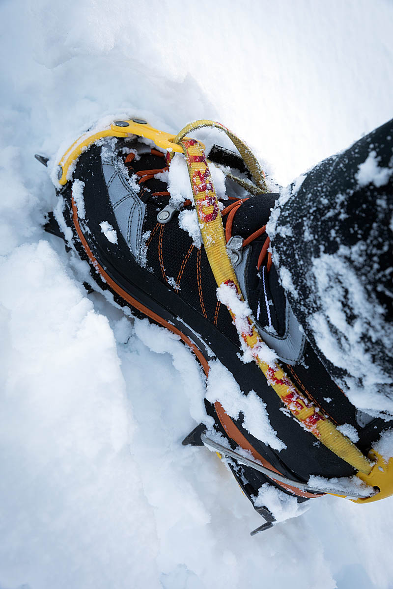 Using crampons over any length of time can place a lot of pressure on the underfoot, particularly on mixed terrain, but the AKU boots maintained pretty much the same level of comfort with metal strapped to them as when used without, the hard rubber of the outsole and the cushioning of the midsole spreading the load well.