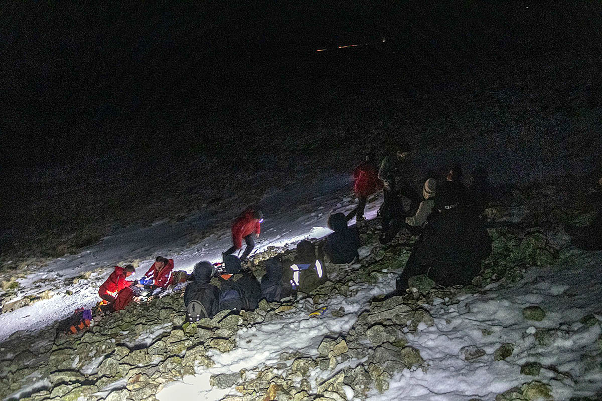 “It was now dark as team members approached the steep section of Browncove Crags. Voices were heard off to the right of the path on the slopes known as Helvellyn Screes and after donning crampons to negotiate the steep and hard snow slopes the team members found the group huddled in small groups on scree ledges.”