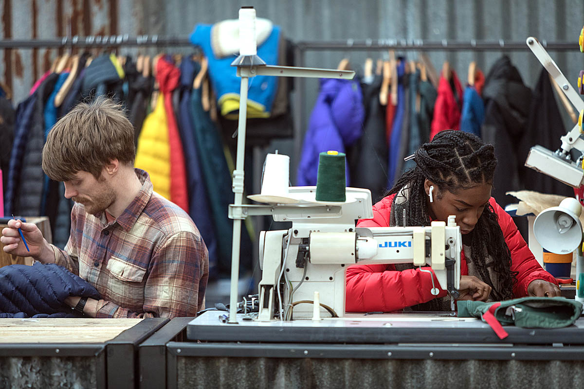 Patagonia Worn Wear workers repair clothing at last year's Kendal Mountain Festival. Photo: Bob Smith/grough