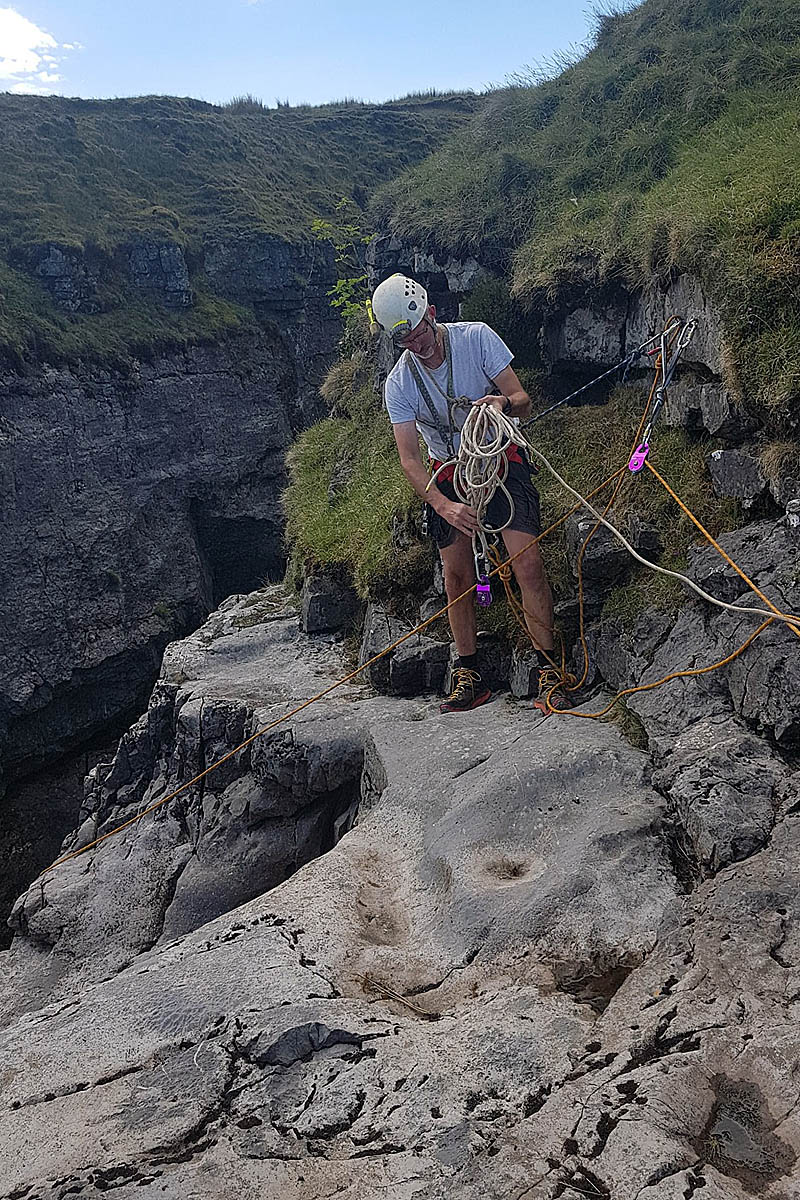 A small number of team members descended into the pot and cared for the dog, which they suspected of suffering fractures in the incident. Piper was then placed on a Bell stretcher and hauled up to the surface.