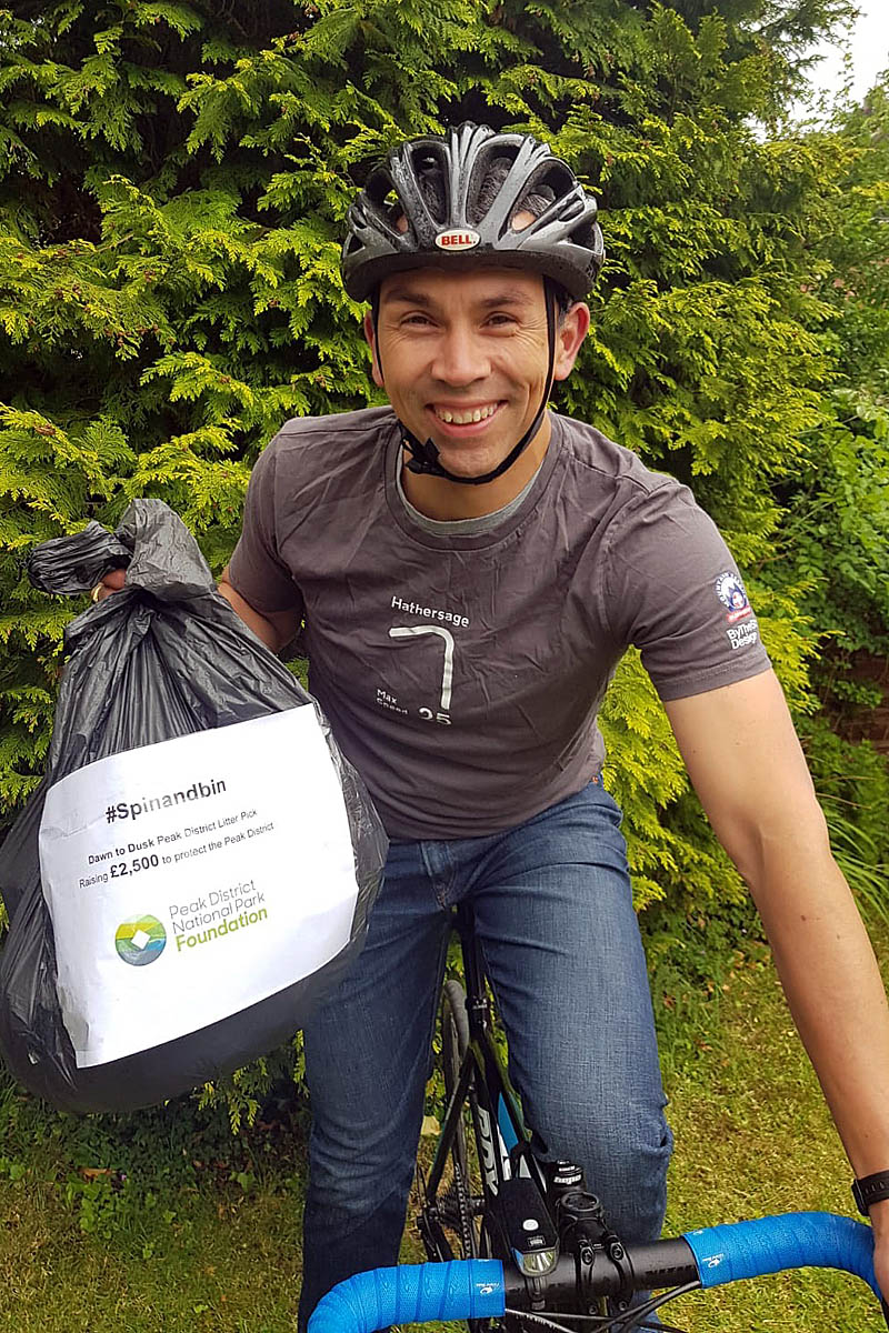 He will be supported by a small team collecting his bagged rubbish as he pedals south across the park after starting with the gruelling Holme Moss climb over Black Hill. He hopes to raise more than £2,500 for the Peak District National Park Foundation, of which he is a trustee.