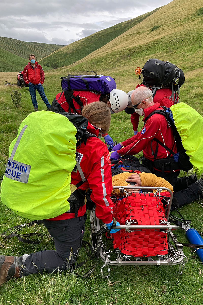 “While the members from the mountain rescue teams were being deployed, local team members travelled to the scene. A small hasty team soon arrived and one of the team medics assessed and treated the casualty’s injuries. Not long after, other team members arrived in the area and had to then hike to the incident, carrying the team stretcher and additional equipment.