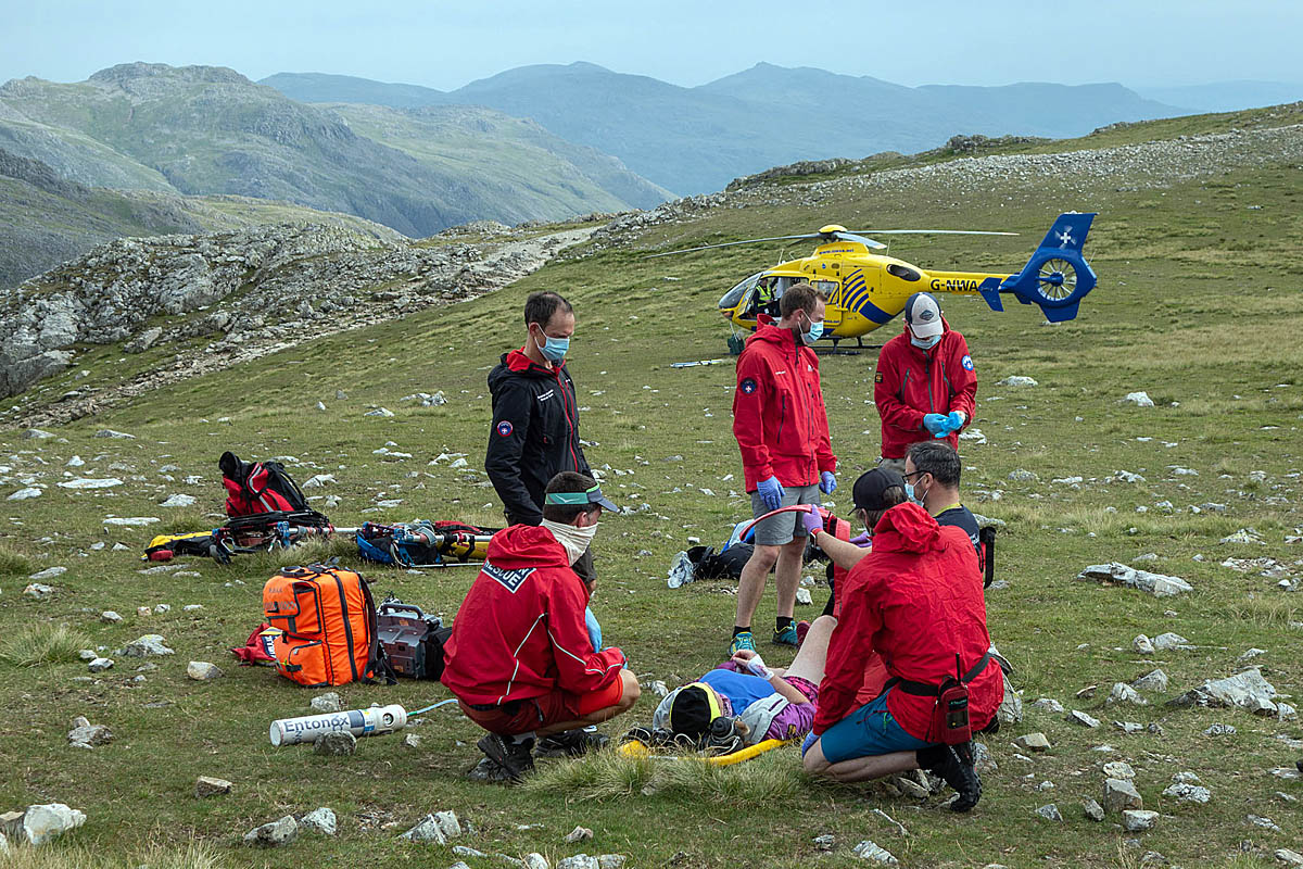 “The air ambulance doctor treated the casualty giving pain relief. Meantime the team continued toiling up the hill in the heat and arrived on scene in time to help load the casualty into the helicopter which then transported her to the Great North Air Ambulance base at Langwathby, to be met by a land ambulance for onward transport to hospital.