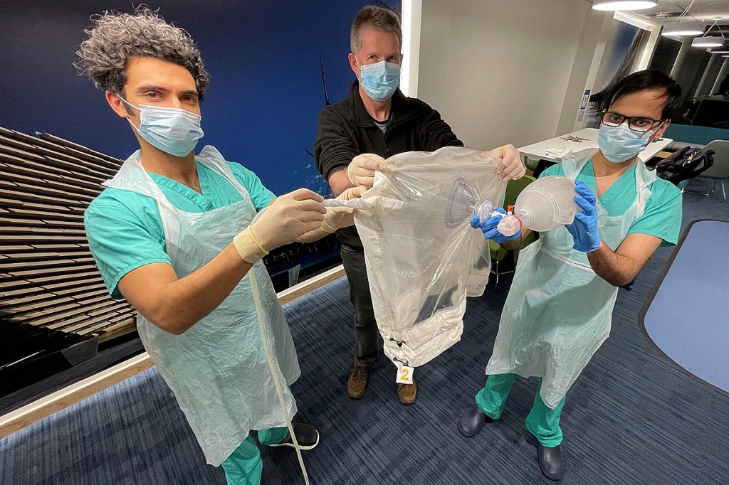 NHS Tayside staff demonstrate the hood: from left, Dr Rasads Misirovs, ENT Surgeon Rodney Mountain, Dr Ruqqash Naveed