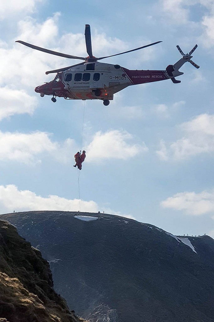 “The casualty was assessed by a team first aider and his ankle was splinted. He was then winched from Striding Edge by the aircraft and flown to Cumberland Infirmary in Carlisle where a fracture to his right ankle was confirmed.”
