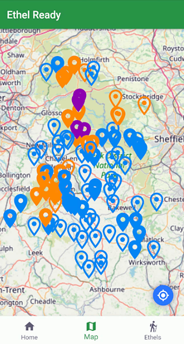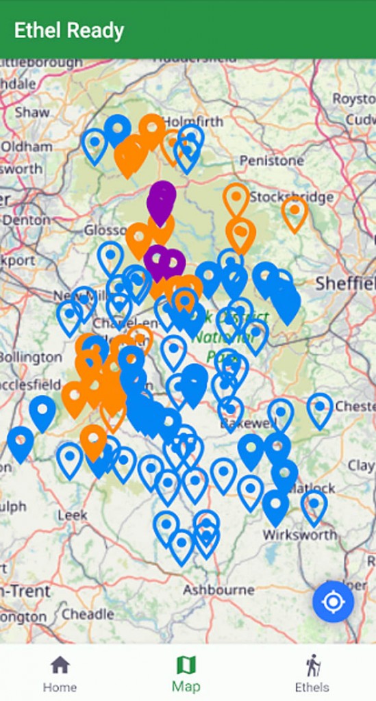 The smartphone app has a map of all 95 Ethels, plus a list of them by name with their height and grid reference.