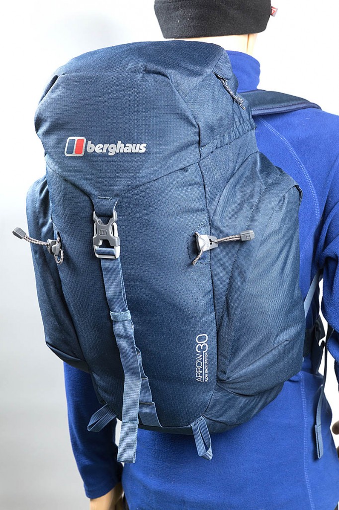The Arrow 30 is a conventionally styled compact rucksack with a single main compartment plus two zipped side pockets. It also has a lid with medium-sized zipped compartment.