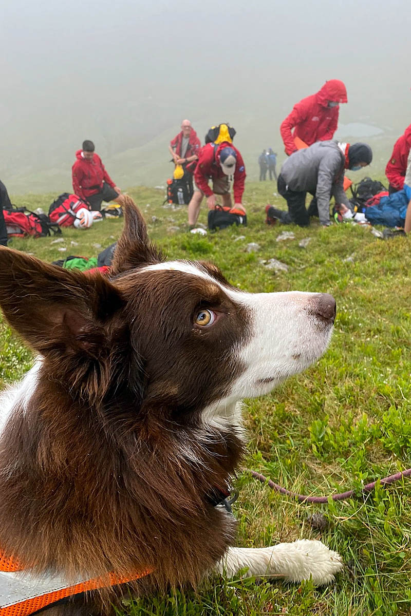 A search and rescue dog keeps an eye on activities during the Dale Head incident. Photo: Keswick MRT