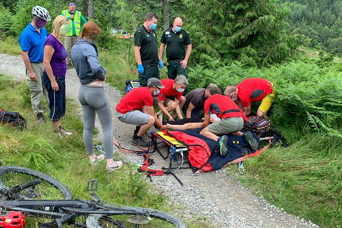 The team had earlier been called out to aid an ambulance crew who were tending to a 15-year-old girl who injured her leg when she fell off her mountain bike on the south blue route in Whinlatter Forest.