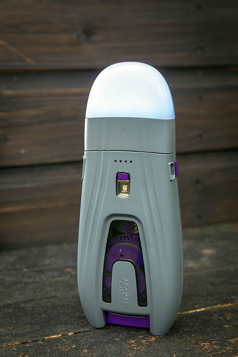At basecamp or in the family tent, it’s a useful addition to the camping gear bag. The addition of the £24.95 ambient light will provide up to 30 hours illumination with a fully charged Unibank. The colour of the light’s LED can be varied throughout the spectrum to suit the in-tent mood using the Unibank app. The unit can be stood upright on its flat base if you’re using the powerbank with its ambient light attachment.