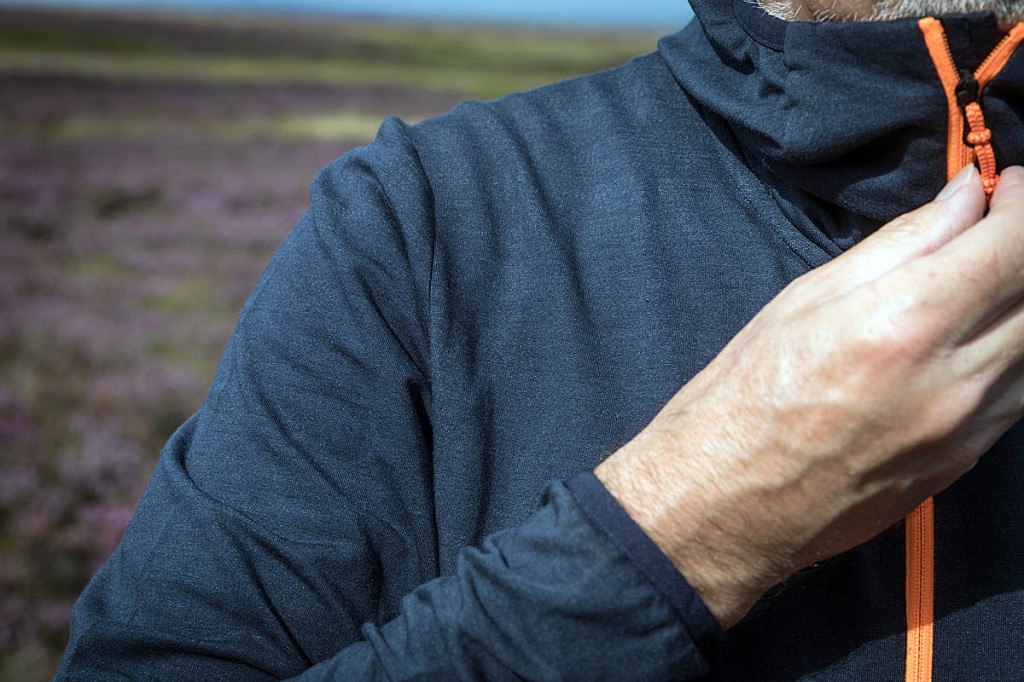 The lack of pockets or other features might be seen as a disadvantage, but it does allow for a sleek design with no snagging points, which works well under a top layer. The quarter zip was useful for allowing ventilation when heading uphill or moving faster on routes.