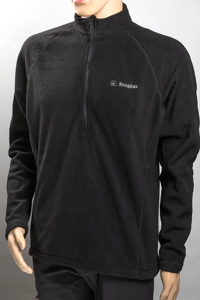 The Snugpak midlayer is a conventionally styled pull-on fleece with a half zip.