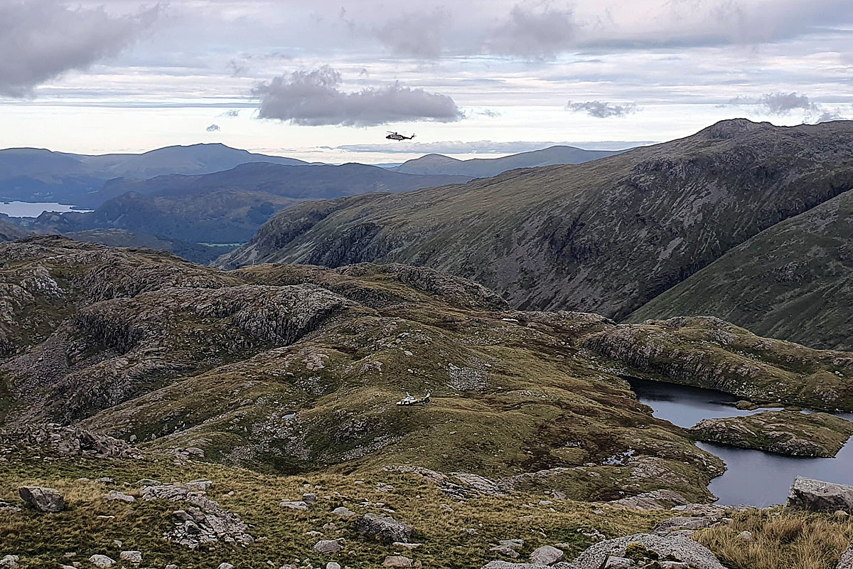 The Great North Air Ambulance Service doctor and paramedic were flown to the summit of Scafell Pike on Wednesday by the Caernarfon Coastguard crew, to help Wasdale Mountain Rescue Team deal with a seriously ill casualty.
