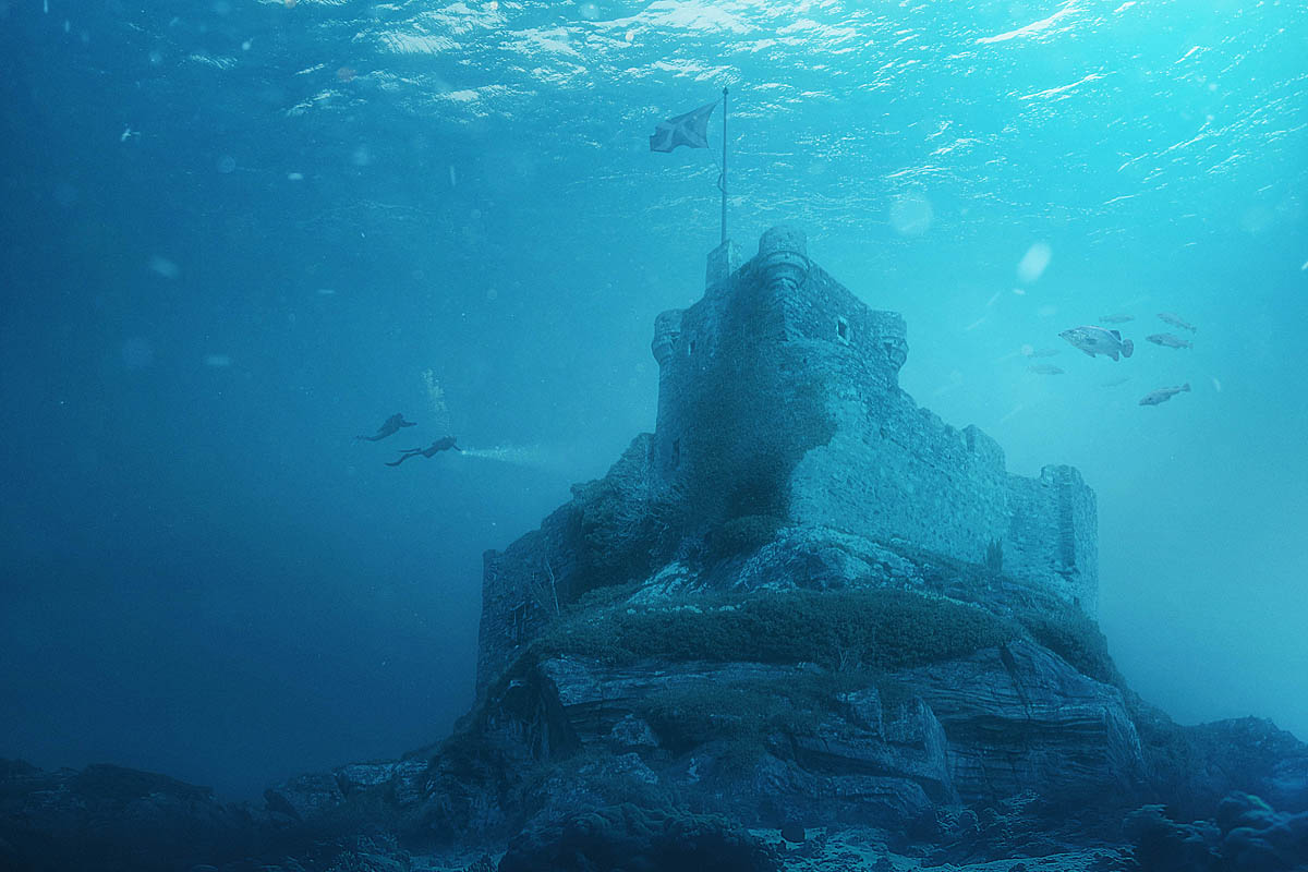 As part of its awareness campaign, Vango also commissioned a series of computer-manipulated images depicting an imagined, dystopian sunken world beyond 2300. One shows a sunken campsite and the second Castle Tioram on Loch Moidart. Currently, the castle is accessed on foot at low tide, but is anticipated to be inaccessible from the land by 2100, along with the loss of local wild camping sites along the Ardnamurchan coast.