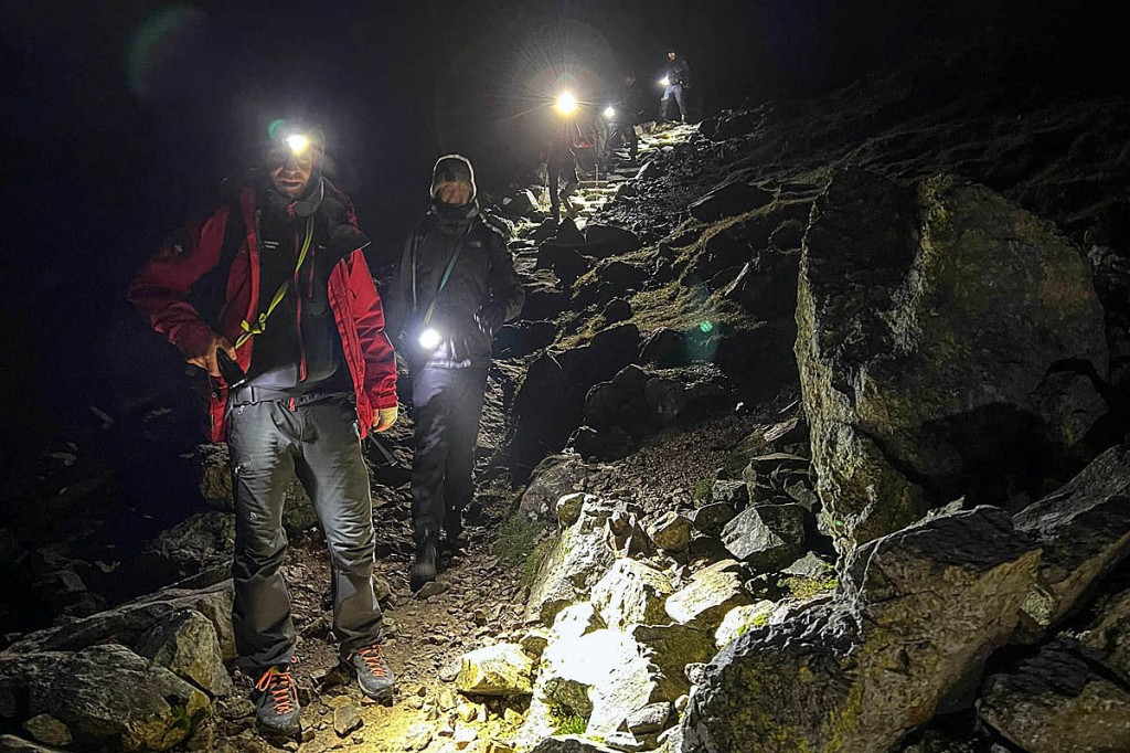 I don't see any issue with the walking at night as long as they were prepared for the weather, that said, clearly navigation and prior knowledge of the mountain would have been useful!