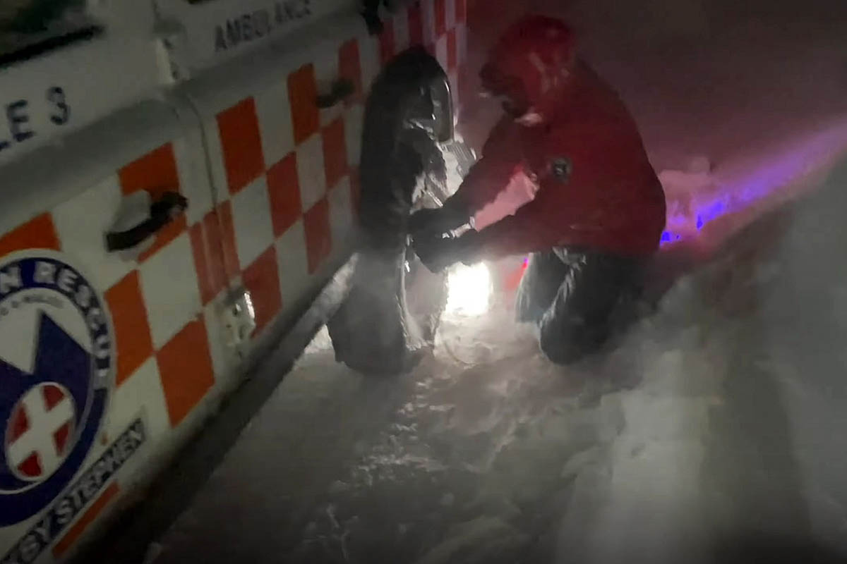 The Kirkby Stephen team posted a video of conditions en route to Tan Hill, north of the Yorkshire Dales, on Saturday during which they rescued three occupants of a vehicle and their three dogs, and also came across four more people stranded in blizzard conditions.