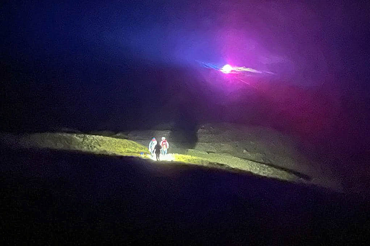 Rescuers said the wintry conditions on the ridge were too challenging for the walkers.