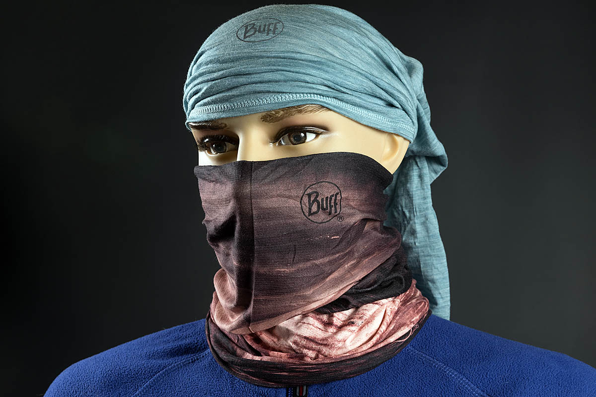 The Buff can also be used as makeshift beanie hat, a balaclava, headband, hood, or pirate-style scarf.