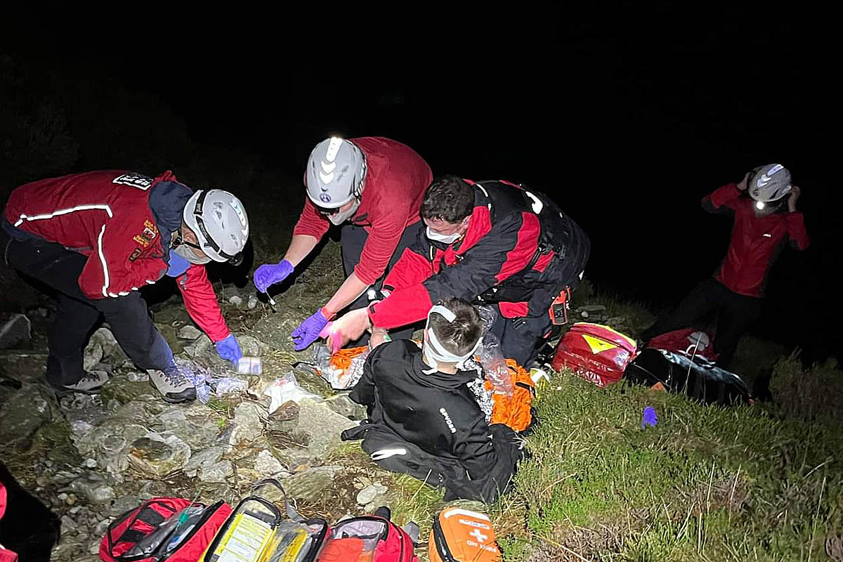 “The casualty’s friend, having been assessed and treated, was able to walk from the scene with a team member and to collect his car and drive to the sanctuary of Oggi Base. Meanwhile, the casualty was treated for head injuries and suspected lower limb injuries before being loaded onto the stretcher.”