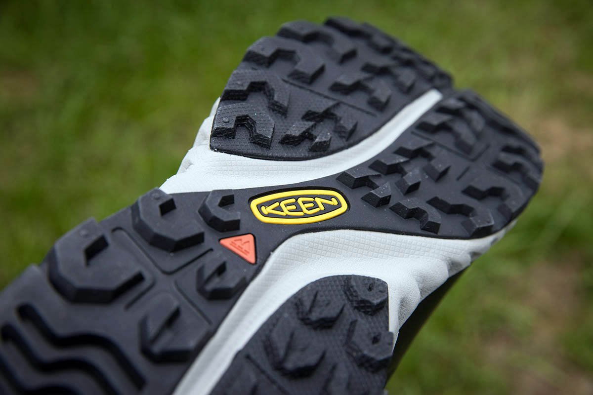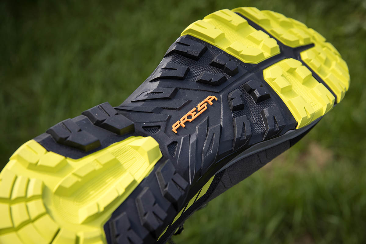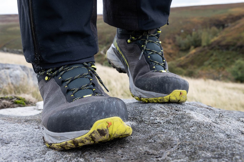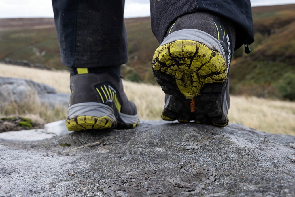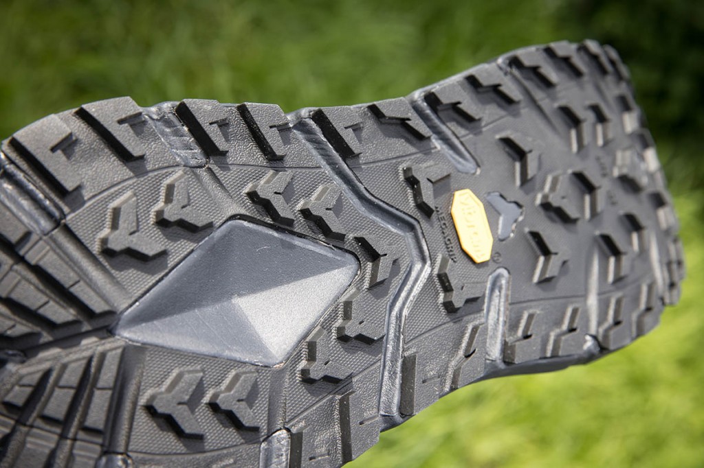 The outsole is Vibram’s Overlook, made with the brand’s Megagrip compound, and has shallow 2mm hexagonal lugs in the forefoot and slightly deeper 4mm ones at the heel. This made for very good grip on rock and hard terrain, but slightly less assured on mud.