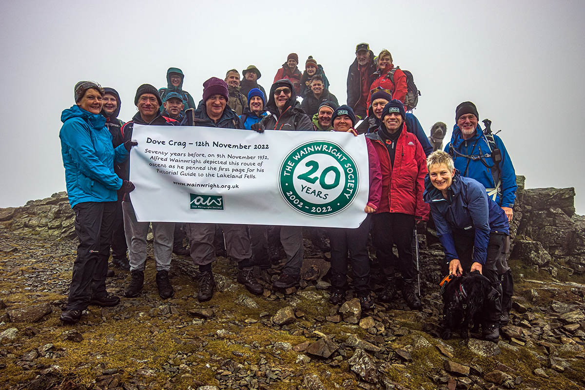 Members of the Wainwright Society celebrated its 20th anniversary with an ascent of the first Lakeland fell described by the late author whose works they promote.