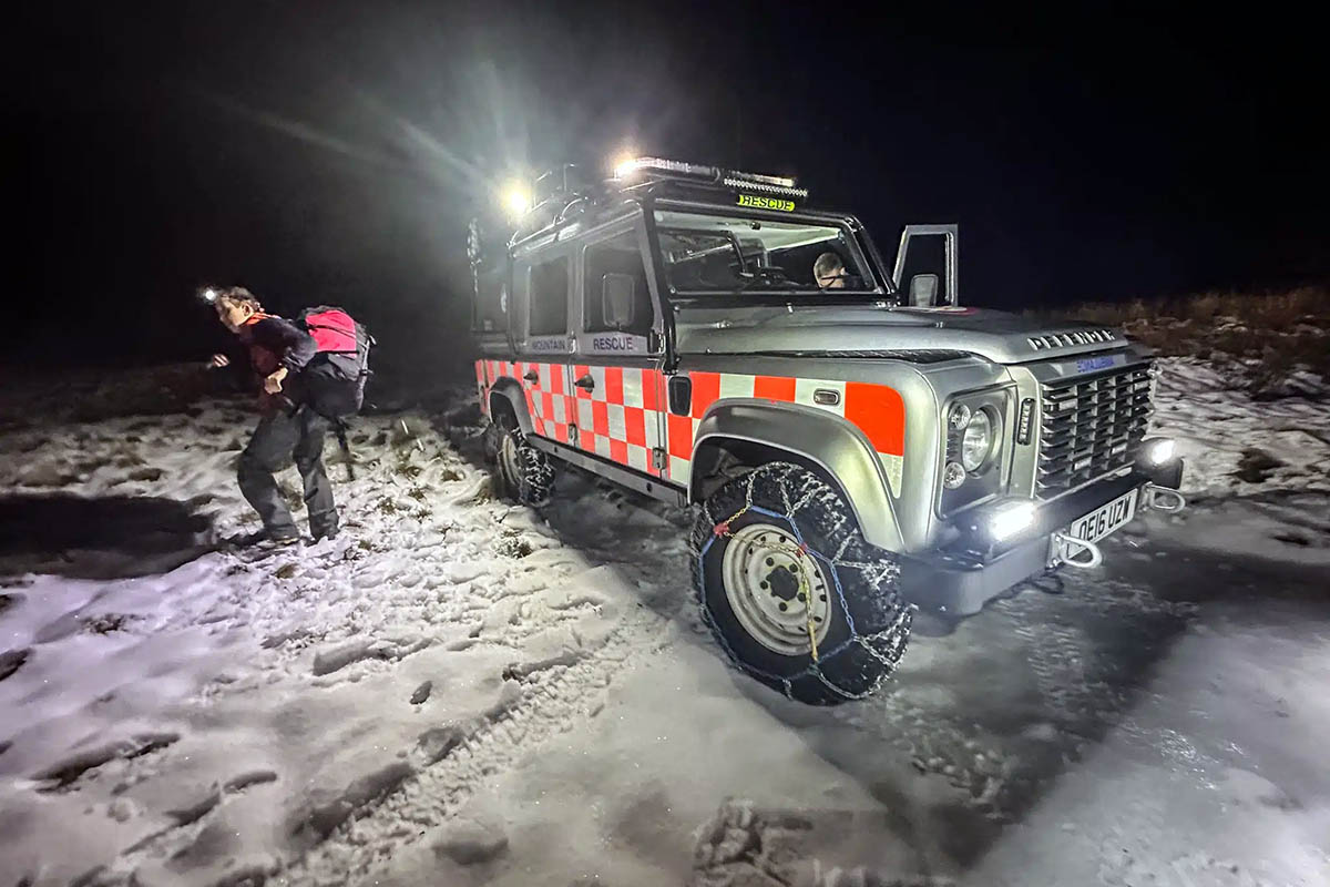 “Once they had finished their hot porridge – they were at least partially prepared – the two men were provided with micro-spikes and torches to help with the icy descent back to the Land Rover.”