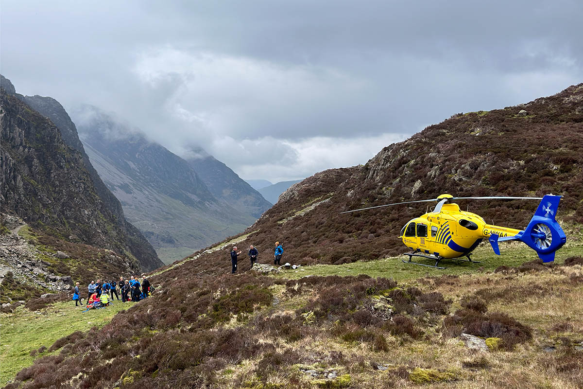 The team was met at Black Beck Tarn by the North West Air Ambulance, which flew the injured walker to Lancaster for further treatment.