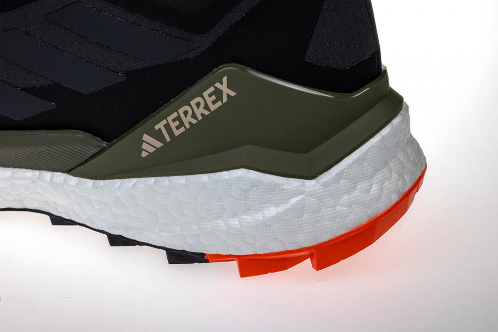 The key aspect of these boots is comfort. The Boost sole unit and pliable uppers made the Free Hiker 2.0 very comfortable and long days on the trail were completed with no fatigue. On hard surfaces, the shock absorption was very noticeable. Adidas says the midsole has energy return, that’s to say the sole transmits back upwards some of the force used in each strike on the ground. It was developed for running and is probably more important for that activity, but on long walks, particularly on rocky terrain and gravel trails, there is a certain feeling of ‘bounce’ without loss of sensitivity to the ground. There’s a pronounced rocker shape to the sole unit too, which helped maintain a good gait while pushing the pace.