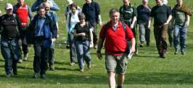 More than 40 walkers stepped out in the footsteps of one of the most celebrated guidebook authors to celebrate the launch of a new book detailing one of his earliest routes.
