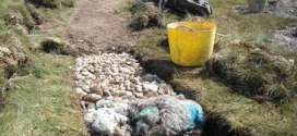 Walkers on a Lake District path may feel a little sheepish as they cross a notoriously boggy section.
