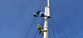 A mountain rescue team member salvaged his country’s pride by scaling a 37m (120-foot) pole. Lewis Harrop went to the aid of the National Trust f...