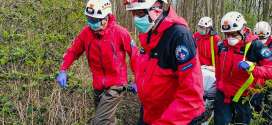Rescuers donned protective kit when they were called out to help an ambulance crew aid a walker with an injured leg.
