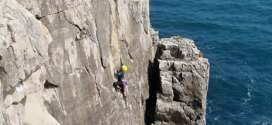 A climber was airlifted to hospital today after suffering suspected back injuries in a fall on a Dorset sea cliff.