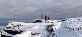 Mountain rescuers and Coastguard aid ambulance staff in freeze