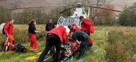 A group of medics called out mountain rescue after one of their party suffered serious leg and wrist injuries in a fall on a Lake District hill.