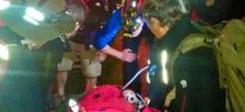 A group of climbers helped rescuers carry an injured fellow rockclimber suffering from back pain after a fall.