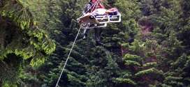 A mountain biker was airlifted to hospital after suffering serious injuries on a forest ‘black route’.